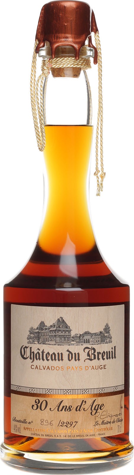 30 let starý Calvados z palírny Château du Breuil, která se nachází v srdci Normandie ve Francii, je výjimečným Calvadosem pro opravdové fajnšmekry. Potěší znalce svými bohatými a extrémně mnohostrannými vůněmi a intenzivní mahagonovou barvou. Ve vůni se objevují tóny skořice, kandovaného ovoce, dubu, včelího vosku, tarte tatin, cedrového dřeva, pomerančové kůry a tmavého tabáku. Na patře je prémiový Calvados plný a kulatý. Komplexní vůně působivě pokračují a jsou obohaceny o tóny pražené kávy, hořké čokolády, karamelu, lékořice a sušených mandlí. Povrchová úprava mistrovského díla Calvados je mimořádně dlouhá.