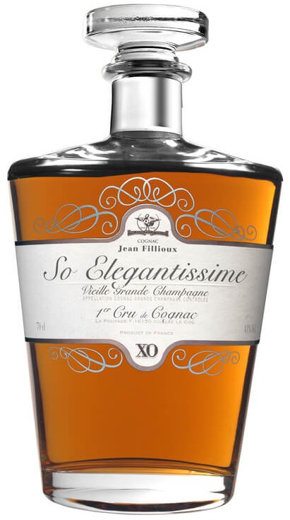Maison Fillioux se nachází v jedné z nejprestižnějších oblastí Cognacu, Grande Champagne a zabírá 50 akrů v rámci „zlatého trojúhelníku“ 1er Cru de Cognac, který je hrdě pokládán za jeden z nejvýše uznávaných mikroteritorií z celých šesti regionů Cognac. Jean Fillioux  So Elegantissime XO je koňak který díky zrání ve francouzských dubových sudech po dobu 25 let získal komplexní aroma a chuť. Elegantní karafa v sobě skrývá koňak jantarové barvy s vůní jarních květin a chutí exotického ovoce.