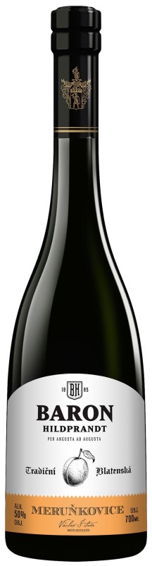 Prvotřídní ovocná pálenka Baron Hildprandt Meruňkovice 50 % je vyrobena z výběrových meruněk z jižních Čech. Ruční rodinná malovýroba je zárukou výjimečnosti a díky trojnásobné destilaci jsou odstraněny všechny nežádoucí látky způsobující nevítané chutě či vůně. Opakovaná destilace naopak zintenzivňuje a zušlechťuje chuť pálenky a díky trojímu provedení si stále uchovává 50 % obsahu alkoholu. Ultra jemný a čistý destilát, který zraje 1 rok ve smaltovaných tancích, tak bude pokaždé unikátním zážitkem s žádoucím silným efektem. Vychutnejte si ultra jemnou a čistou meruňkovici, na které pracují ti nejlepší odborníci ze zámecké palírny Blatná.
