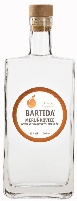 Jemná ovocná pálenka vyrobená trojnásobnou destilací vyzrálých meruněk z velkopavlovické oblasti. Meruňkovice je čirý destilát vyznačující se sladkou vůní meruněk, připomínající meruňkovou marmeládu s lehkým peckovým podtónem a jemnou, ovocně medovou, ale suchou chutí. BARTIDA Meruňkovice se vyrábí třístupňovou destilací z neupravovaného přírodního kvasu z meruněk. Přítomnost pecek dodá destilátu charakteristickou chuť minerálů a třísloviny.