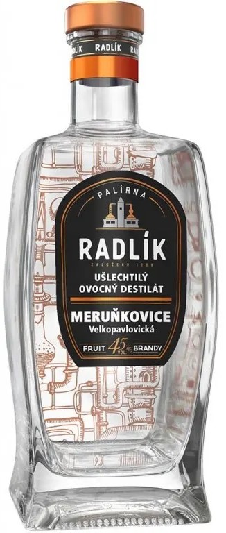 Radlík Meruňkovice je ovocný destilát z vyzrálých meruněk, vyrobený v Palírně Radlík v České republice. Tato zlatá meruňkovice zraje v malých dubových sudech po dobu minimálně 2 let, čímž získává bohatou a komplexní chuť s tóny vanilky, karamelu, koření a dřeva. Je ideální pro milovníky meruňkovice, kteří ocení tmavý a komplexní destilát s hladkým a vyváženým chuťovým profilem.