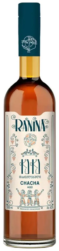 Chacha (čača) je tradiční pálenka z Gruzie, občas se můžeme také setkat s pojmenováním gruzínská vodka. Jedná se o hroznový destilát, tradičně vyráběný ze zbytků hroznů po lisování gruzínského vína. Historie chachy se datuje do 15. století. Byla vyrobena z hroznového vína a fermentovaných bobulí rakytníku. Chacha byla v Gruzii velmi populární po staletí a stala se nedílnou součástí gruzínské tradice. Zpočátku byla užívána převážně pro své léčivé kvality - používala se pro léčbu některých nemocí a jako preventivní opatření proti chorobám. Postupem času se stala populární mezi spotřebiteli, kteří ji používali k pití a výrobě nápojů. Díky své oblíbenosti se chacha stala neodmyslitelnou součástí gruzínské kultury. Ranina Chacha Aged se vyrábí tradiční technologií dvojitou destilací z hroznových slupek. K výrobě se používá odrůda hroznů Saperavi z oblasti Kacheti a po destilaci zraje 6 měsíců v dubových sudech.