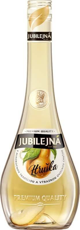 Jubilejná Hruška přináší lahodnou a plnou chuť voňavých hrušek. Díky přidané ovocné šťávě mile překvapí svou jemností. Bez překvapení je tak nejprodávanější variantou řady Jubilejná. Pravý hruškový destilát, lahodná hrušková šťáva a křišťálově čistá voda zpod tatranských štítů jsou korunovány kouskem ovoce vložném v lahvi.