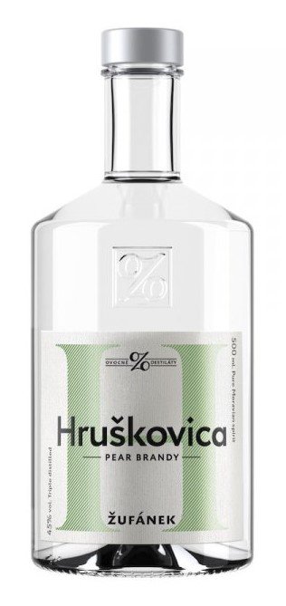 Žufánek Hruškovica je jemný destilát, vyrobený z hrušek Williams. Charakteristické vlastnosti této lahodné odrůdy dodávají destilátu dlouhotrvající hruškovou chuť. Při přípravě kvasu a samotné výrobě je dodržován stejně pečlivý postup jako u Žufánkovi slivovice. Proto je vybíráno jen to nejkvalitnější ovoce pocházející výhradně z moravských ovocných sadů.