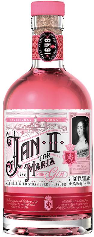 "Za každým silným mužem stojí ještě silnější žena" a u tohoto ginu to platí zaručeně. Poté co si Jan II. Kazimierz Waza vzal za manželku Ludwiku Marii Gonzaga de Nevers, otevřela si Maria literární salon v Paříž a následně i v Polsku. Její manžel jí daroval velké zásoby ginu, který podávala svým hostů. Přidávala do něj jahody, které mu dodávaly krásný růžový nádech. A právě díky tomu vznikl gin Jan II. for Maria. Jak již příběh napovídá, Gin je obohacený o přírodní ovocnou chuť lesních jahod obohacený o 7 vybraných bylin. Produkt si zachovává svoji kvality díky sedmi stupňové destilaci, která probíhá přímo ve Spešské pálenici. Gin je ideální i do základů pro tvorbu míchaných nápojů. Vychutnejte si jedinečnou atmosféru například v kruhu svých přát