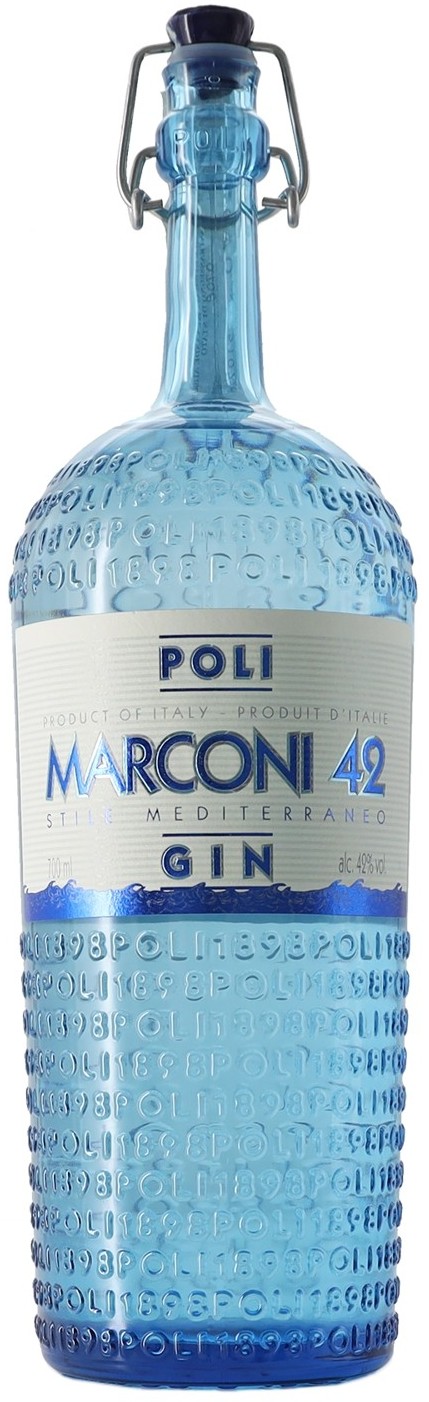 Marconi 42 je ultraprémiový italský gin vyráběný v malých dávkách. Marconi je jméno ulice, kde se nachází destilerie a číslo 42 označuje objem alkoholu v ginu. Destilace probíhá jedinečnou metodou ve vakuu na zařízení bain-marie, která umožňuje získat intenzivní vůni, čistou chuť a dlouhotrvající aromatickou vytrvalost.  Svou unikátní chuť získává gin díky infuzi jalovcem, rozmarýnem, mátou, bazalkou a tymiánem. V ústech je gin vyvážený, jemný a harmonický s tóny koriandru, kardamomu a fenyklu. Kombinace středomořských bylin a koření připomíná slunce, teplo a italské pobřeží. Když si pak dáte sklenici blízko k uchu, uslyšíte cvrčky a cikády.