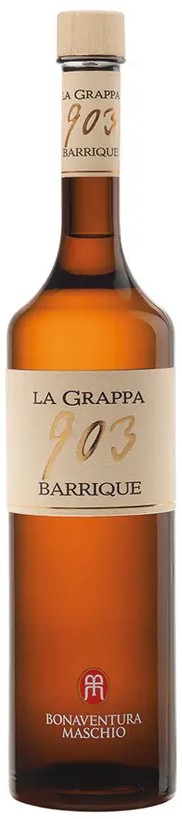 La Grappa 903 plně odráží velkou osobnost a mistrovství Bonaventury Maschia, zakladatele stejnojmenné společnosti z Gaiarine. Jedná se o dokonale vyvážený destilát ze směsi slupek různých hroznů, destilovaných na měděných destilačních přístrojích. Po destilaci zraje nejméně šest měsíců v barikových sudech, které jí dodávají delikátní kořeněnou vůni s tóny zralého ovoce a nezaměnitelnou jemnou a dlouho trvající chuť. Bonaventura Maschio se narodil v roce 1903, ale vzhledem k tomu, že na matrice udělali chybu a napsali jako rok narození 903, použili jeho potomci na etiketě letopočet tak, jak byl zapsán, dokonce i stejným typem písma. Grappa 903 je dnes nejprodávanější grappou v italských barech a restauracích.