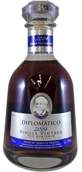 Single Vintage je mimořádná ročníková edice rumu Diplomático vyráběná v limitovaném množství. Její destilace probíhá ve starobylém měděném destilačním kotli a v tzv. batch kettle. Jednotlivé rumy se ukládají ke zrání do sudů po bourbonu a single malt whisky. Následuje jejich pečlivé míchání, aby bylo dosaženo požadované struktury, těla, charakteru, chutě a vůně. Na konci výrobního procesu se rum uloží do sudů po prémiovém sherry, které mu poskytují závěrečný dotek. Ročník 2004 se vyznačuje omamným aroma vanilky a mandlí s náznakem žlutého melounu. Na patře je plný, s tóny vanilky, dřeva, tabáku, rozinek a karamelu. Má lehce suché zakončení a velmi dlouhou dochuť s tóny sušeného ovoce.