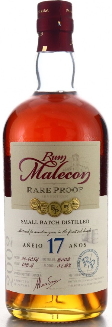 Malecon 17YO 2002 Rare Proof je ultra-prémiový rum destilovaný v roce 2002 a uložený na 17 let do malých soudků po bourbonu. Stáčen byl v roce 2019 v sudové síle, která nabízí přímo explozi aromat a chuti. V chuti najdeme bohaté tóny sušeného ovoce, tmavé čokolády a krásné aroma páleného dubu.