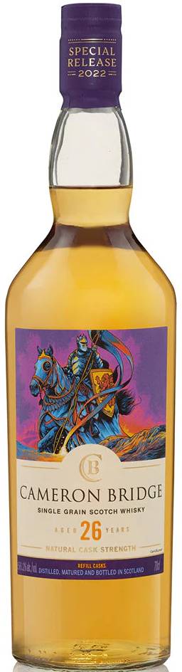 Whisky Cameron Bridge 26 YO má jemnou vůni s lehkým náznakem pižma, sladkých karamelek a dubových hoblin. Jemná a lehká chuť po sladkých karamelkách je cítit v každém doušku. Závěr je delší a suchý.
