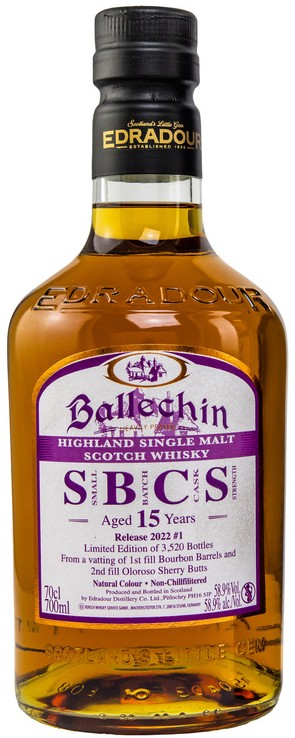 Palírna byla založena roku 1825 několika zdejšími farmáři, jméno Edradour pak používá od roku 1837. Toto pojmenování pochází z gaelského Edred dobhar, což znamená „Pramen krále Edreda“. Po roce 2002, kdy palírnu koupila společnost Signatory, byla na trh uvedena řada speciálních ročníkových sérií. Rašelinná verze whisky Edradour se stáčí pod obchodním jménem Ballechin. Přivoňte si, ucítíte delikátní rašelinový slad, dřevěné železniční pražce, uzené mandle, kouř z komína, dobré dřevo, kůži, vanilku, špetka kolomaze a dehtu. Ve vůni se dočkáte také máty, lékořice, zeleného pepře a perníku.
