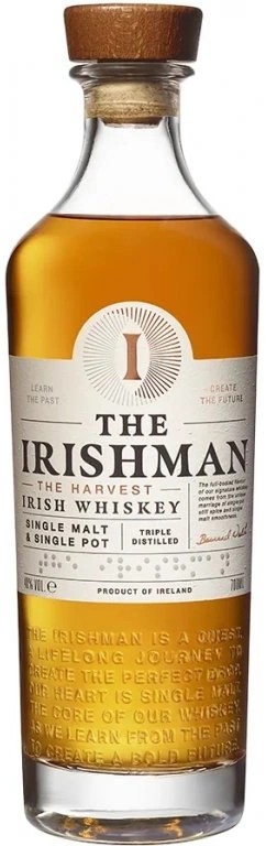 The Harvest je nové pojmenování pro dřívější Irishman Founder’s Reserve. Jde o unikátní pojetí tradiční irské whiskey. Třikrát destilovaná, Single Malt a Single Pot Still. Ve vůni lze ucítit nejprve slad a broskev, pak broskvový sorbet, broskvový ledový čaj nebo sousto zralého čerstvého ovoce. Vše je jemné a delikátní. Dřevitá, dubová, smetanově karamelová chuť - jako lahodná karamelka. To je vliv sladu a pot still destilace. Ucítíte neuvěřitelnou jemnost. Ale tóny dubu a sladového ječmene vás nenechají na pochybách o tom, co pijete. Dlouhý dubový závěr s doteky karamelu. Jako by nikdy nechtěl skončit.