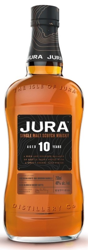 Whiskey Isle of Jura 10 let je lehká a svěží a v jejím aroma najdeme náznak mořské soli, a také mandlové a kořeněné tóny. Její chuťový charakter je lehce rašelinový, sladový a nasládlý. Palírna Isle of Jura byla založena v roce 1810, ale podle historických důkazů docházelo k nelegálnímu pálení na tomto odlehlém ostrově již od začátku 16. století, takže neoficiálně by se mohlo jednat o nejstarší palírnu ve Skotsku.