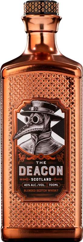 THE DEACON je prémiová skotská whisky mistrovsky namíchaná z pečlivě vybraných whisky, včetně těch z historicky proslulých oblastí Islay a Speyside ve Skotsku. Sladové whisky ze Speyside jí propůjčují lehkou chuť kouře z táboráku, single malts z Islay zase výrazný charakter kouře z rašeliny. Výsledný dojem je neuvěřitelně komplexní a bohatý. K výrobě whisky THE DEACON se využívají tradiční měděné destilační přístroje, kterými je inspirován neopakovatelný design měděné láhve.